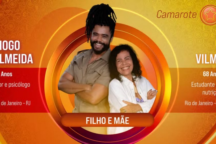 O ator e psicólogo Digo Almeida vai encarar o BBB 25 junto com a mãe, Vilma. Aos 68 anos de idade, a sergipana é fã declarada do reality show e acompanha desde a primeira temporada. Inclusive, chegou a se inscrever junto com o marido. Ela, que também cursa nutrição, disse que, ao saber do convite para o BBB 25, sentiu o mesmo nervosismo de quando entrou na faculdade.